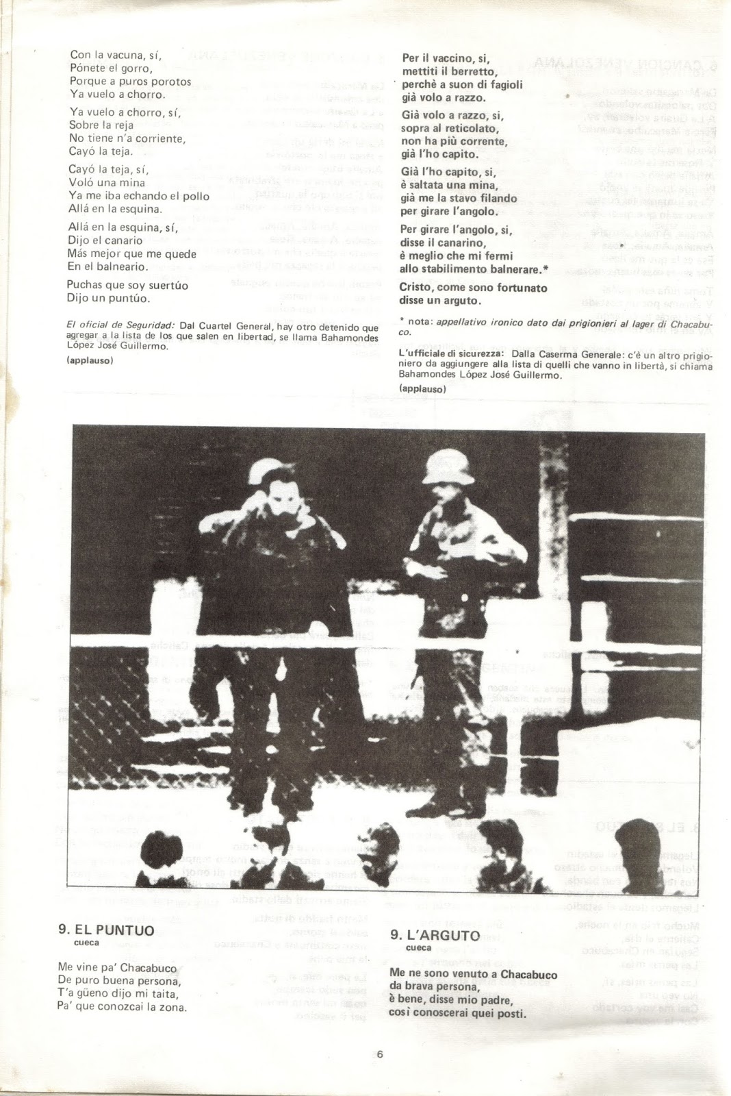 Las cuecas compuestas en el campo, que en la carátula aparecen bajo el único titulo de "El afortunado", se llaman "El suertudo" y "El puntudo" en el orden en que están en el disco y sus autores fueron Víctor Canto y yo (ambos de la UTE). Las letras pueden ser difíciles de entender pues, en parte, se refieren al folklore del campo de concentración y en parte