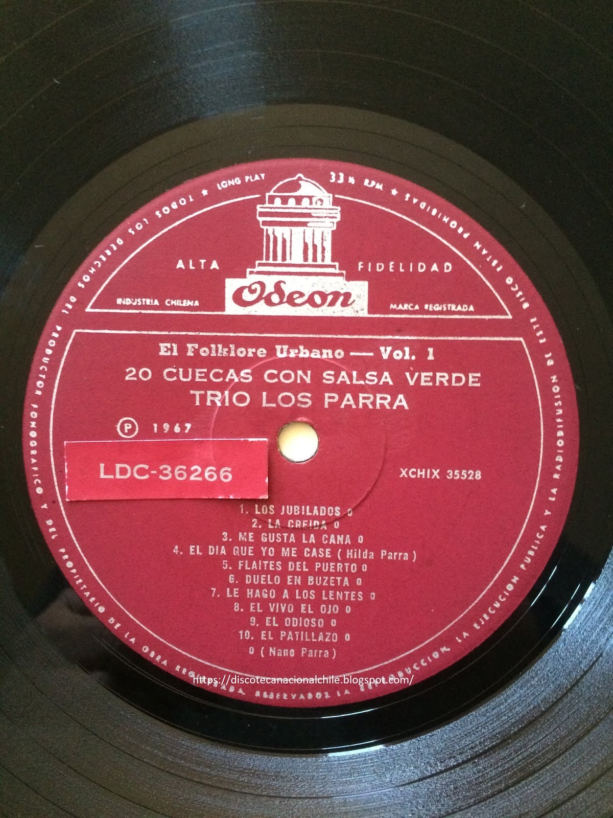 Trío Los Parra: 20 Cuecas con Salsa Verde. El Folklore Urbano Vol. 1. LDC-36266. Odeón. 1967. Chile